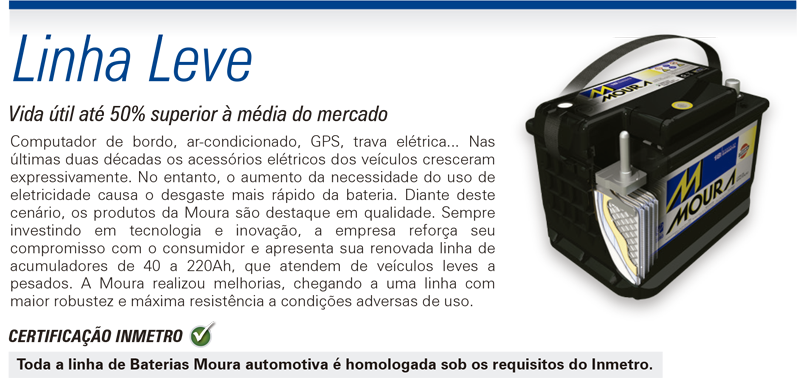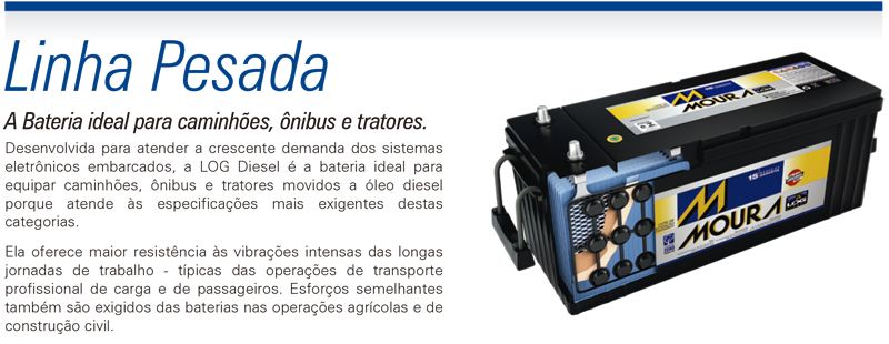As baterias mais demandadas pelo mercado com até 78Ah, contam com garantia de fábrica Moura de 18 meses.